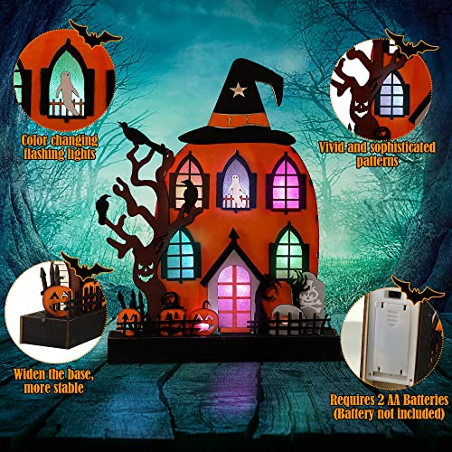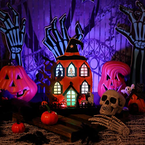• Lighted Halloween Decor: the Halloween pumpkin house has built in colored light strings that reflect colorful lights from the windows of the haunted house, along with the changing flashing patterns, making your Halloween night even more mysterious and fun