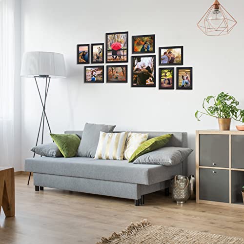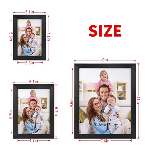 - DISPLAYS MULTIPLE-SIZES PICTURES: The black wall frame set comes with 10 pieces frame: 2 pcs 8x10 inch frames, 4 pcs 4x6 inch frames, 4 pcs 5x7 inch frames, and perfects for photograph, art project, painting, certificates and more.