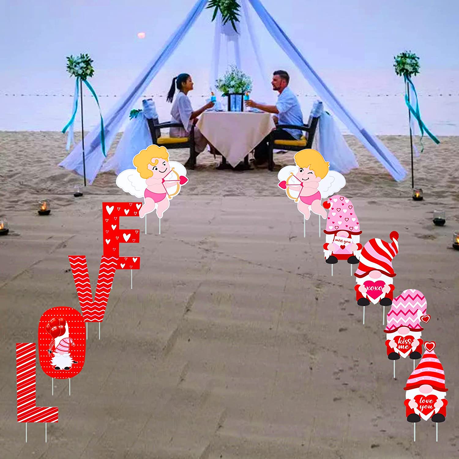 10 PCS Valentines Decorations Outdoor, Yard Sign Love Gnomes Heart Angel