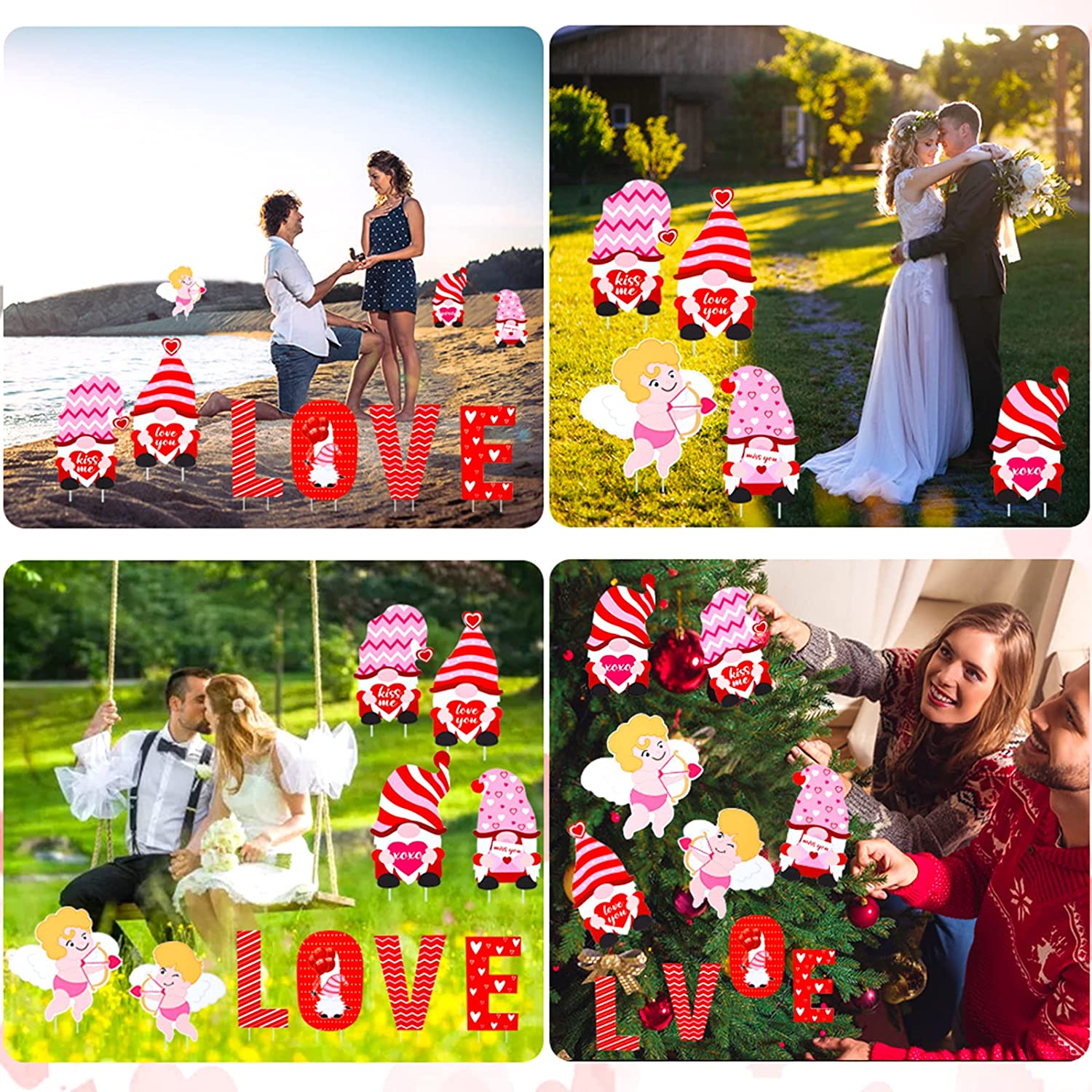 - ❤ EYE CATCHING DESIGN - Valentine's Day outdoor decorations are inspired by the sweet gnomes and angels of Valentine's Day sign. These Valentines yard signs are designed with gnomes and LOVE elements with exclusive Valentine's Day colors of red and pink. The cute design and bright colors will add extra color to your garden, yard, garage or door!