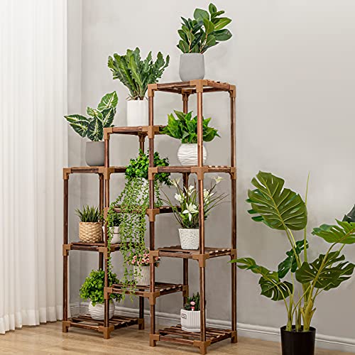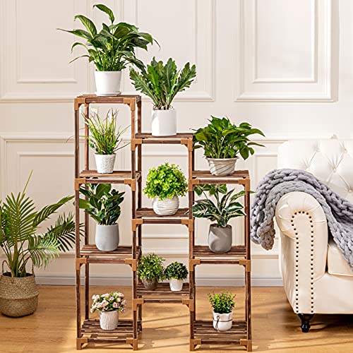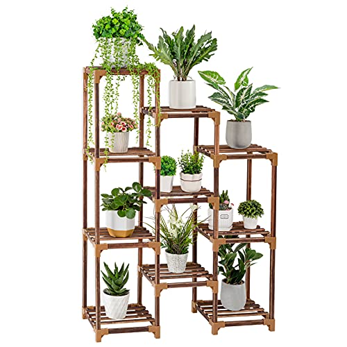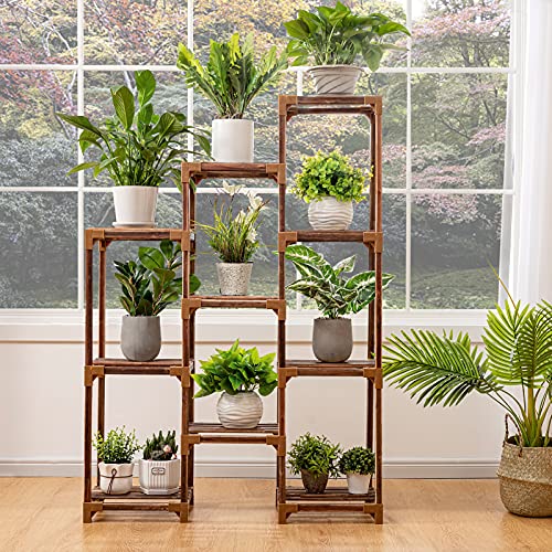 - 【CARBONIZED TREATMENT WHITOUT PAINT】With 800℃ high-temperature carbonization, High-temperature carbonization protects the wood of the plant stand outdoor from corrosion , which make it more durable. It doesn't use paint, it's safer, moisture-proof and more environmentally friendly.
