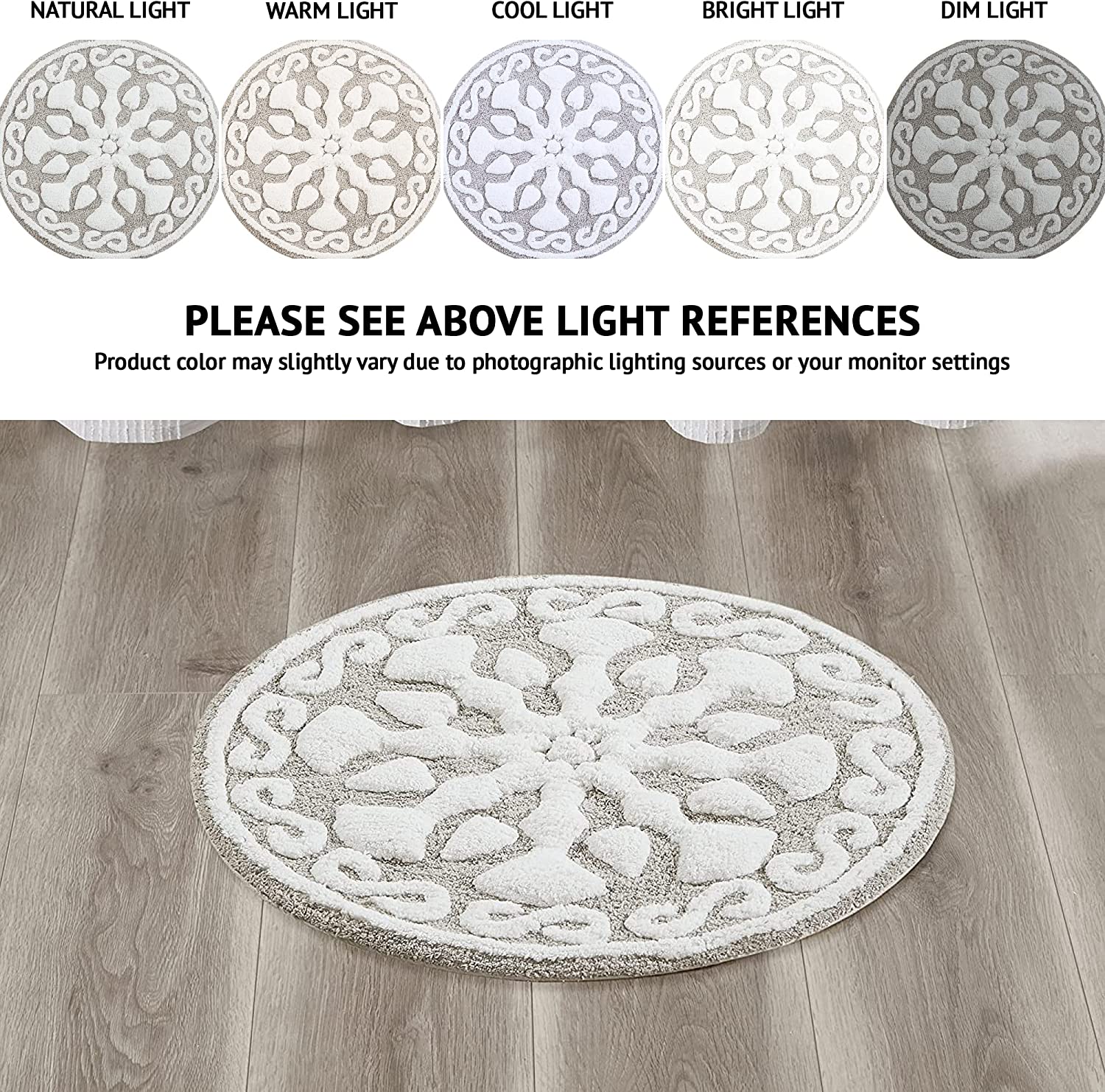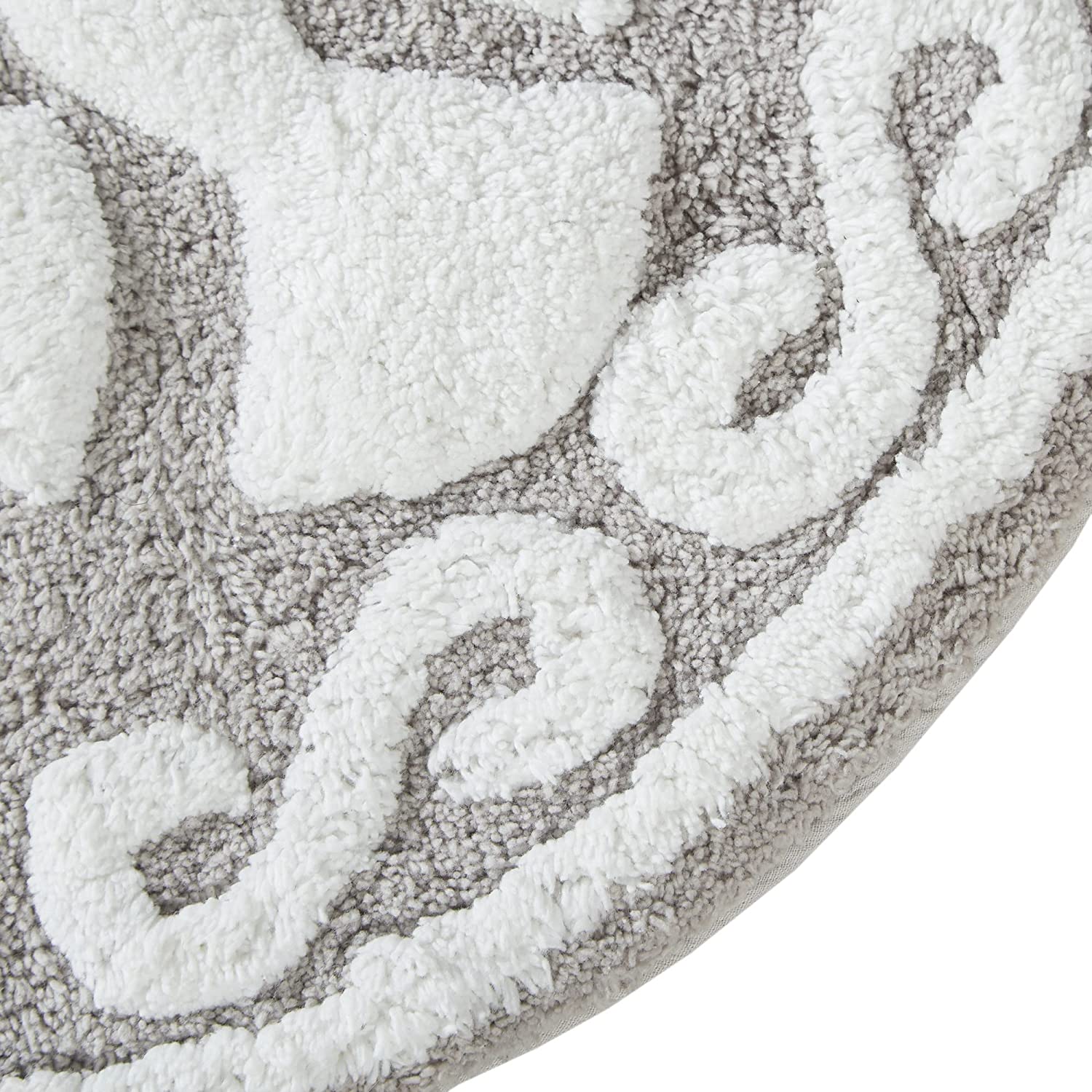 100% Cotton Tufted Bathroom Rugs Luxurious Plush Medallion Floral Pattern Bath Mat Absorbent, Quick Dry, Round 25", Taupe