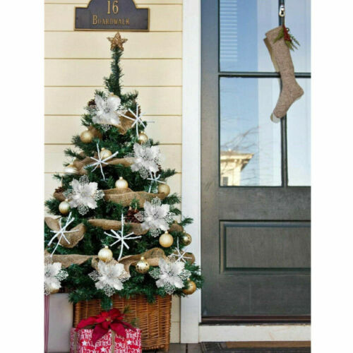 10Pcs Glitter Christmas Poinsettia Hanging Flowers Xmas Party Tree Decoration