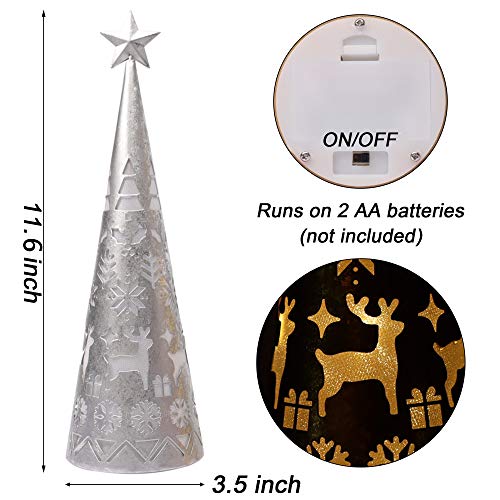 - Christmas Table Top Decorations: Set of 2 light-up conical Christmas lanterns with warm white 10 LED brings holiday touch to your space. Antique finish surface design adding an elegant, festive atmosphere to your home decor centerpieces year after year.