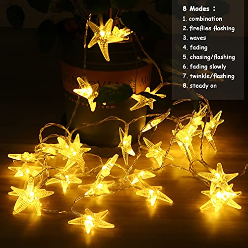 11 Feet 30 LED Starfish Shaped Battery Operated LED Fairy String Lights