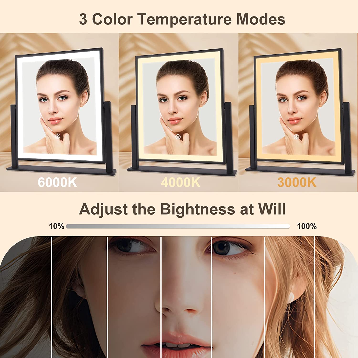 - 【Dimmable Touch Control】 LED one-button touch to adjust 3 colors (3000K/4000K/6000K) dimming (10%-100%) to make your makeup mirror lifelike. The smart memory always kept the best setting to help you show your beautiful self