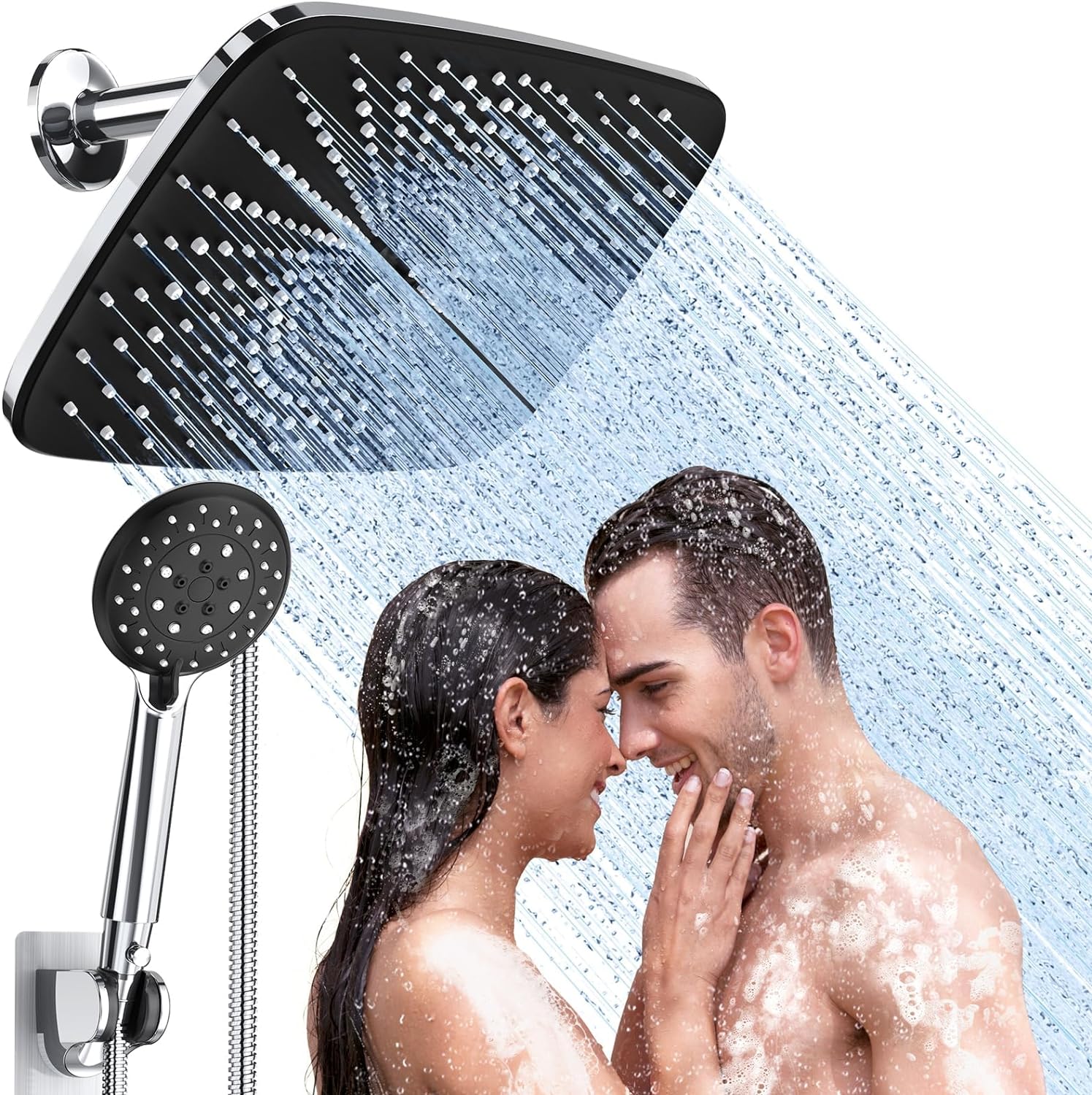 12 Inch High Pressure Rain Shower Head -Shower Heads with 5 Modes Handheld Spray Combo- Wide RainFall shower with 70" Hose & Bracket- Adjustable Dual Showerhead with Anti-Clog Nozzles - Chrome