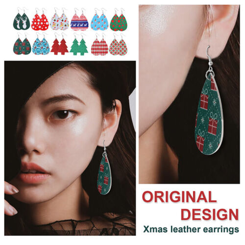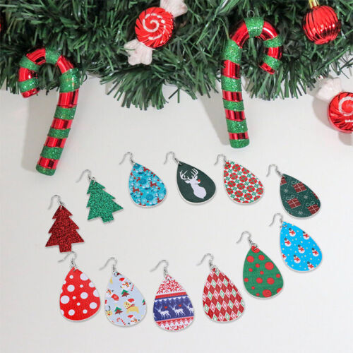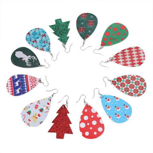12 Pairs Christmas Faux Leather Teardrop Dangle Earrings Xmas Jewelry for Women