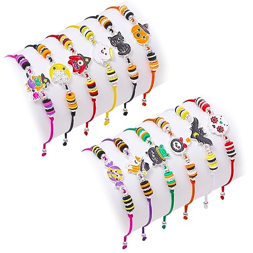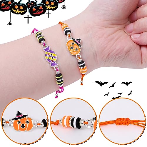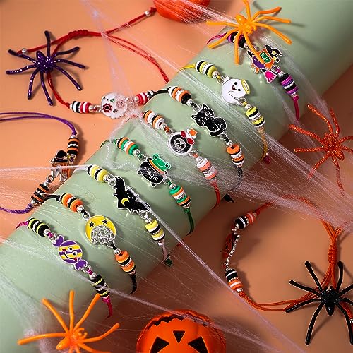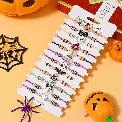 12 Pcs Bracelets for Girls Women Halloween Jewelry Friendship Braided Bracelet Pumpkin Ghost Charms Adjustable