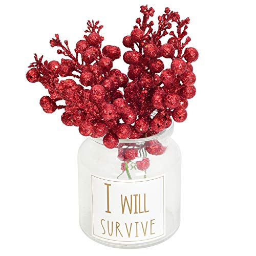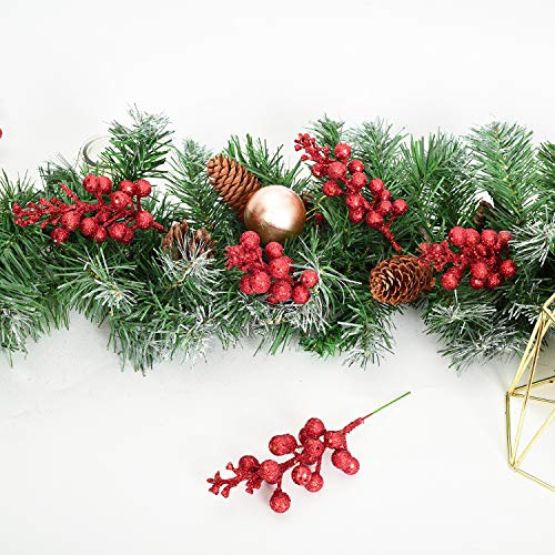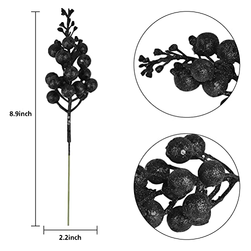 - Package includes 14 berry stems and each stem with 15 glitter berries approx. diameter 0.6in, stem length approx. 8in, Add a few of these into your Christmas floral arrangements, plain wreaths, swags, garlands or Christmas trees to give it dimension and to liven it up!
