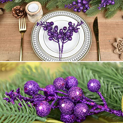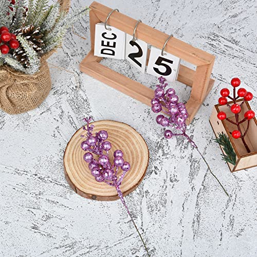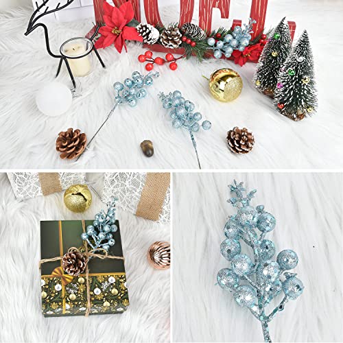 14 Pack Christmas Glitter Berries Stems- 7.8Inch