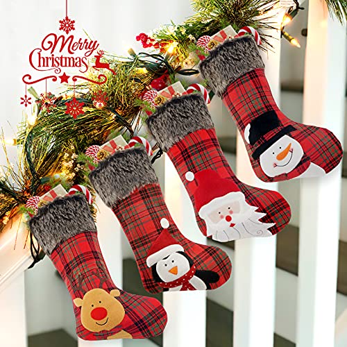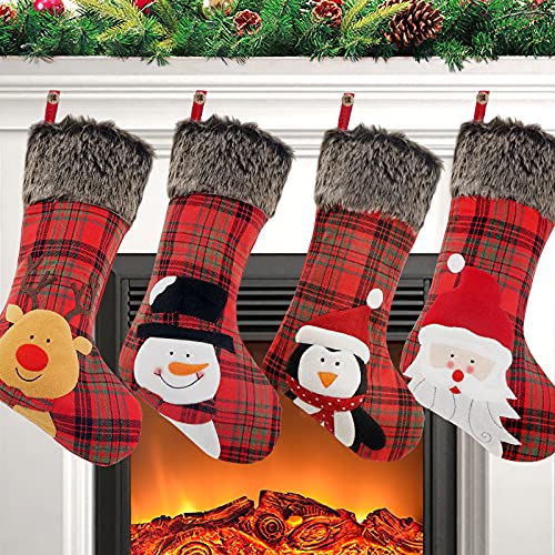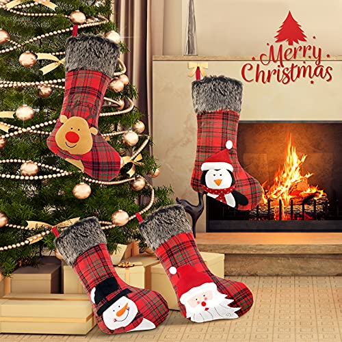 - 🎁Original Design🎁 This value package comes with 4 big Xmas cute stockings with Cute Penguin, Santa, Snowman and Reindeer. Put carefully selected gifts for the family and children. They will look definitely great when hanging to Christmas tree, bedside, stairs, the fireplace. Perfect decoration for Christmas, New Year at home, restaurant, club, bar.