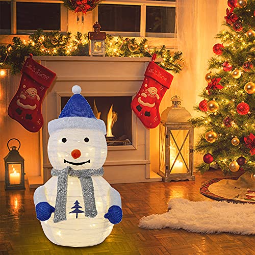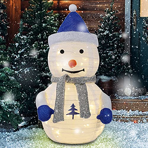 - Lighted Collapsible Christmas Snowman: Collapsible lighted Christmas snowman at 2.3FT high, perfect indoor and outdoor Christmas party supplies, brings stronger feeling of Christmas atmosphere and makes it big and attractive Christmas decorations around.