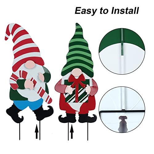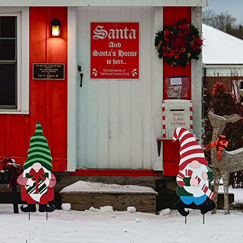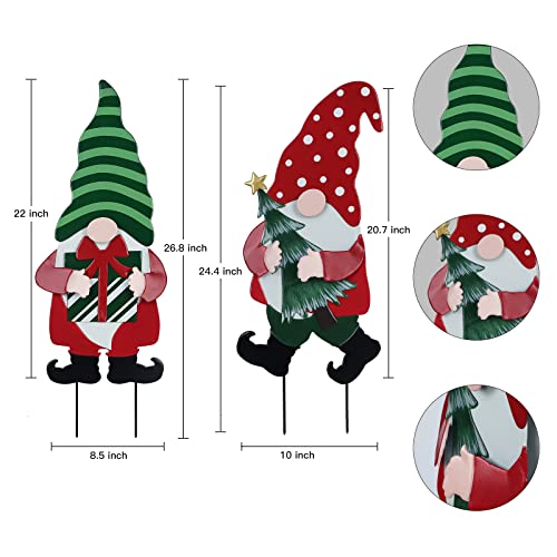 2 Pack Decorative Christmas Gnomes Garden Metal Stakes