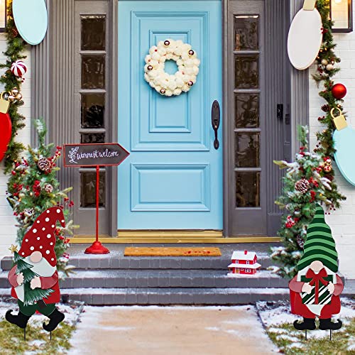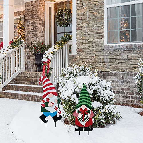 - 🎄【OUTDOOR CHRISTMAS DECORATIONS】Our cute Christmas gnomes decorations are made with Christmas colors, one holding candy canes and another holding present in arm. Surface use 3D design make them looks more realistic and vivid, with these Christmas gnomes will bring more energy to your home and warmth throughout the winter.