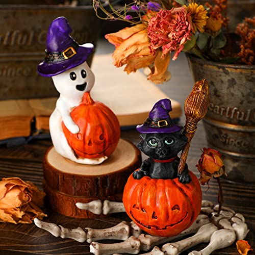 - Halloween Figurine: the little witchy cat is a nice addition to your Halloween decorations, and this little ghost will warm your heart, nice decorations for the autumn season or Halloween