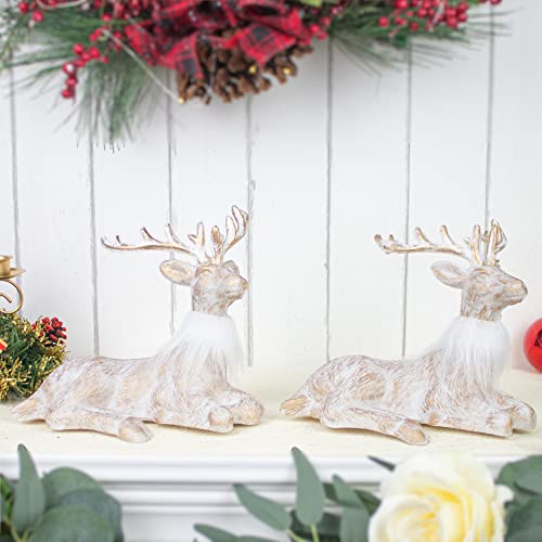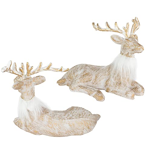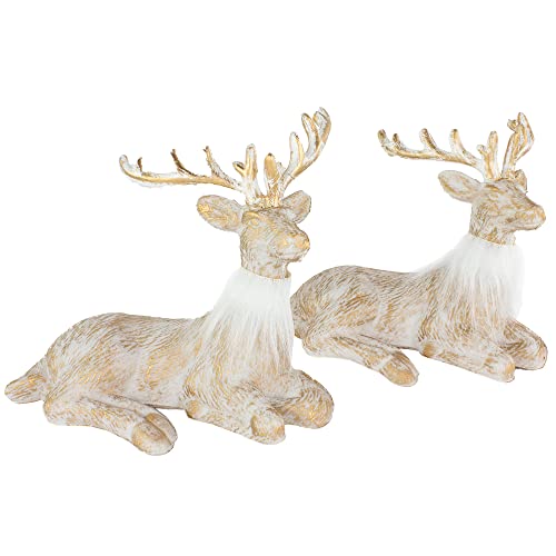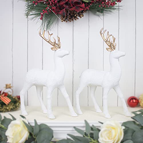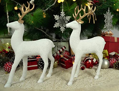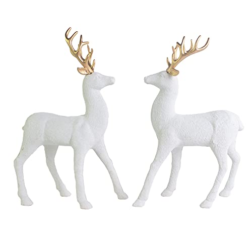 - Standing reindeer figurines measure 13.4" X 8.3", set of 2.