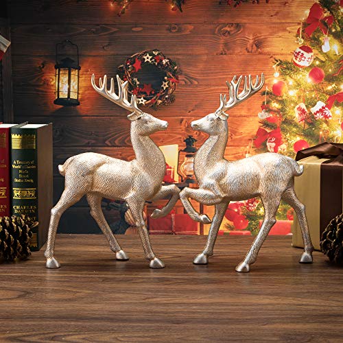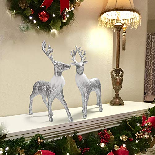 - These reindeer decoracion statue made of quality resin and finished in glittering will shine and sparkle in the Holiday lights.