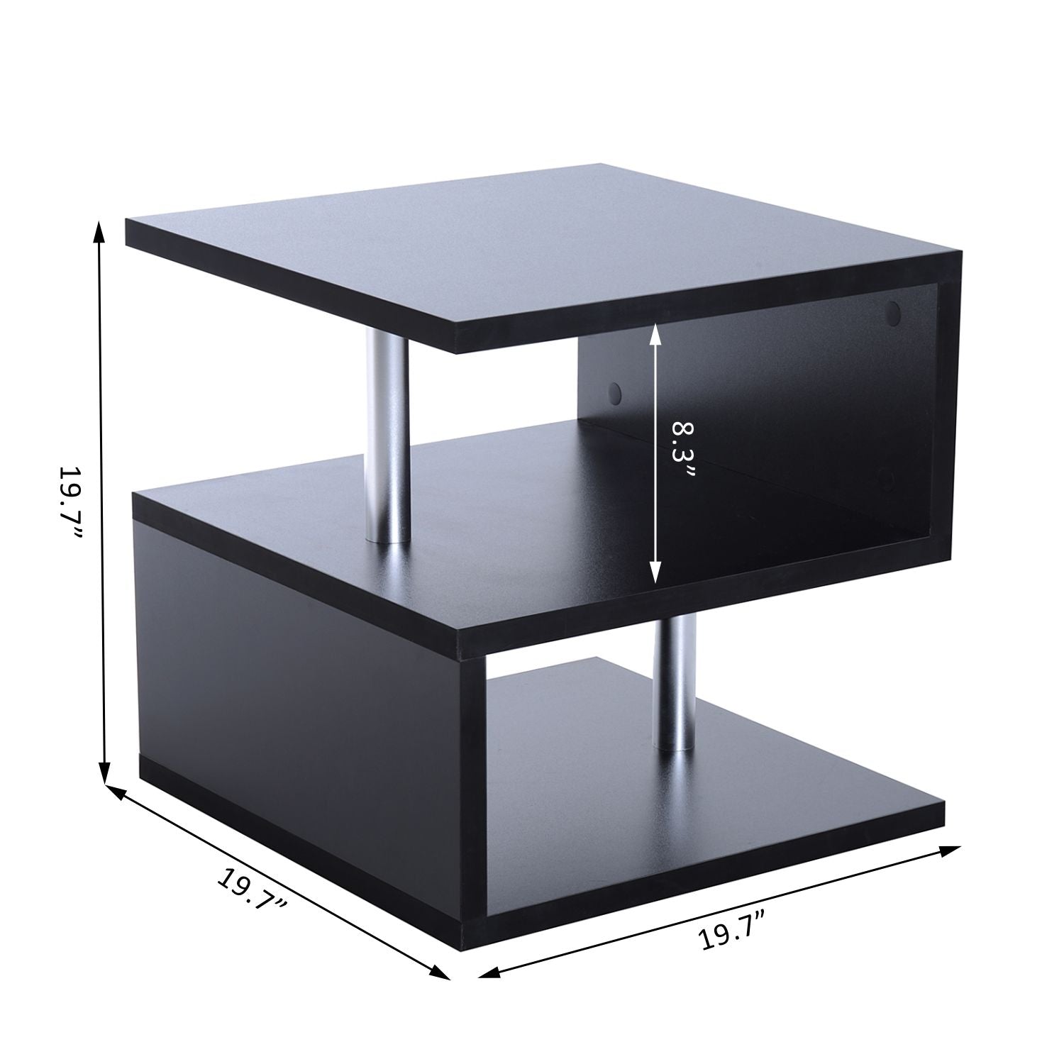 Enhance your living space with ' 3 tier s-shaped accent end table that is perfect for displaying your favorite decorative items, lighting, or plants in entryways, bedrooms and living rooms. It' an artful way to place lamps, books, and collectibles in smaller spaces around furniture. Use it to complement your existing furniture or make it the centerpiece of any setting. The unique design features three tiers, two with eye-catching metal supporting poles, and a large open surface table top. The smooth water-resistant surface is easy to clean and maintain. For bold, contemporary style and endless possibilities, you can' beat this latest exciting offering from- Modern s-shaped accent table with three landings for storage and display *- Beautiful bold finish for a contemporary look *- Metal support poles add strength and visual detail *- Lightweight and space saving design *- Perfect for living rooms, entryways, bedrooms and more