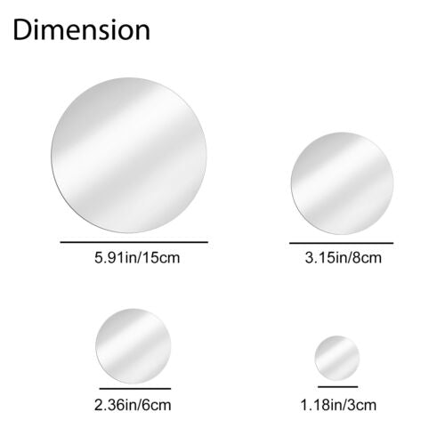 • ✨ DIY Mirror Wall Stickers: 4 different sizes, diameter from 3cm/1.18" to 15cm/5.91", 26 round stickers, the reflective surface can make your room brighter, enough to decorate the room and make your home look more artistic and more beautiful.