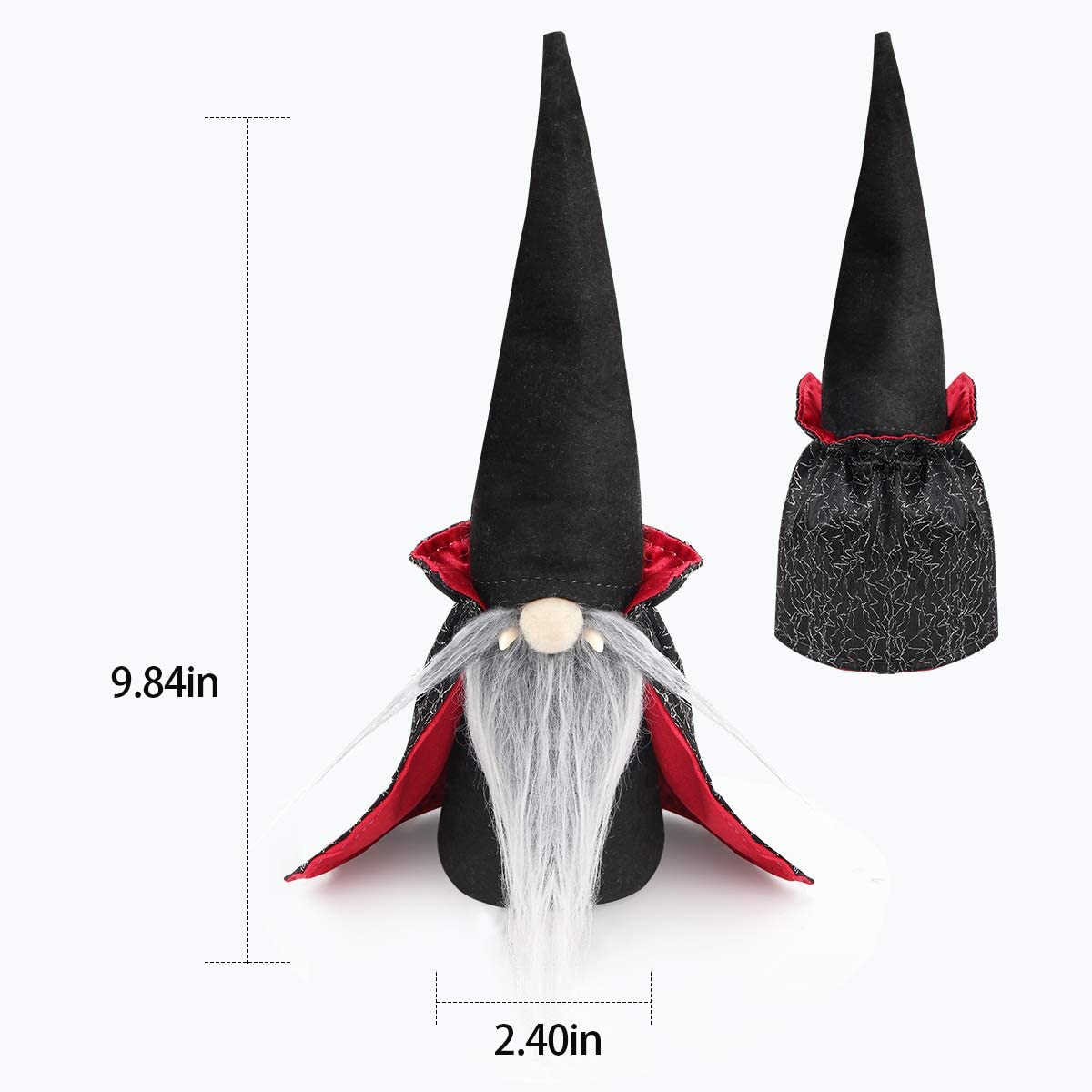 Dress Up Your Home for Halloween Season Dress up your home for the season with this family friendly decoration--2 pack Halloween Gnomes. Each wears a witch's hat and has a nose that peeks out from its beard. They’re a cute and perfect addition to your home or office. Set on your fireplace, hutch or tiered tray, he's sure to bring a touch of whimsy to your holiday season. These Halloween Witch Gnome Set features a nose, gray hair with a long black hat, red+black cloak, ready for the Halloween festivities. Use for home decor or the perfect Halloween hostess gift. Make the perfect addition to your Halloween decor collection! Features: *- Halloween Gnomes Plush - These Halloween gnomes are all ready for Halloween, wearing a witches hat and shining cloak, so unique and different! Each Gnome plush is absolutely charming, will bring smile and win over any Gnome lover’s heart! Package contains pair of gnomes plush. *- Premium Quality & Fine Craftsmanship - The Halloween Gnome Couple are all made by professional artisans, combination of black and red colors, featuring a heavy base for the extra stability, a wire in gnomes ridiculously tall hat in order to pose it for maximum whimsy. Made of plush and felt, non-toxic and odorless. *- Adorable Design - Handcrafted . The Gnome features long plush gray beard. Black hat and cloak adds festive atmosphere. The size is about 9.84 inches tall from hat top to bottom and 5.5 inches tall after hat be folded, perfect addition to the Halloween collection. *- Halloween Decorations - These halloween gnomes are the perfect size to place anywhere in your home and add a whimsical touch to Halloween decorations. perfect addition for your desk to bring a bit of cheer to the home/office. Enjoy for Halloween! *- Ideal Gift - Gnome is a great decoration and gift for many holidays. Be it Halloween, Christmas, New Year, Birthday, Housewarming, Independence Day, Halloween, Thanksgiving, Valentine`s Day, St Patrick`s Day, Easter, Mother`s Day or Professional Day! It is ideal for spreading holiday spirit in the house. Use for home decor or the perfect Halloween hostess gift. Specification: *- Item type: Halloween Gnomes Plush Decor *- Brand: D-FantiX *- Color: Black *- Material: Plush *- Occasion: Easter, Christmas, Housewarming, Happy_birthday, Halloween, Thanksgiving, New years *- Product Dimensions: 5.91"L x 5.51"W x 2.95"H Recommendation: *- Makes for a fun centerpiece *- Great for a mantle decoration *- Makes a great gift *- Gnome place like home for this magical gnome *- Add some mystical enchantment to your holiday decor with our charming gnome decor. Lovely witch gnome with long black hat and white faux fur beard features polyester stuffed and weighted body, making him perfect for any table top. *- For decorative indoor use only *- Holiday plush, fantasy, gnomes, elves. *- Product may ship compressed. Some primping/fluffing may be required to match the image shown. Please Note: *- Please allow slight dimension difference due to different manual measurement. *- The size of the gnome is about 9.84 inches tall from hat top to bottom. But when you received it, it is about 5.5 inches tall due to its hat be folded.