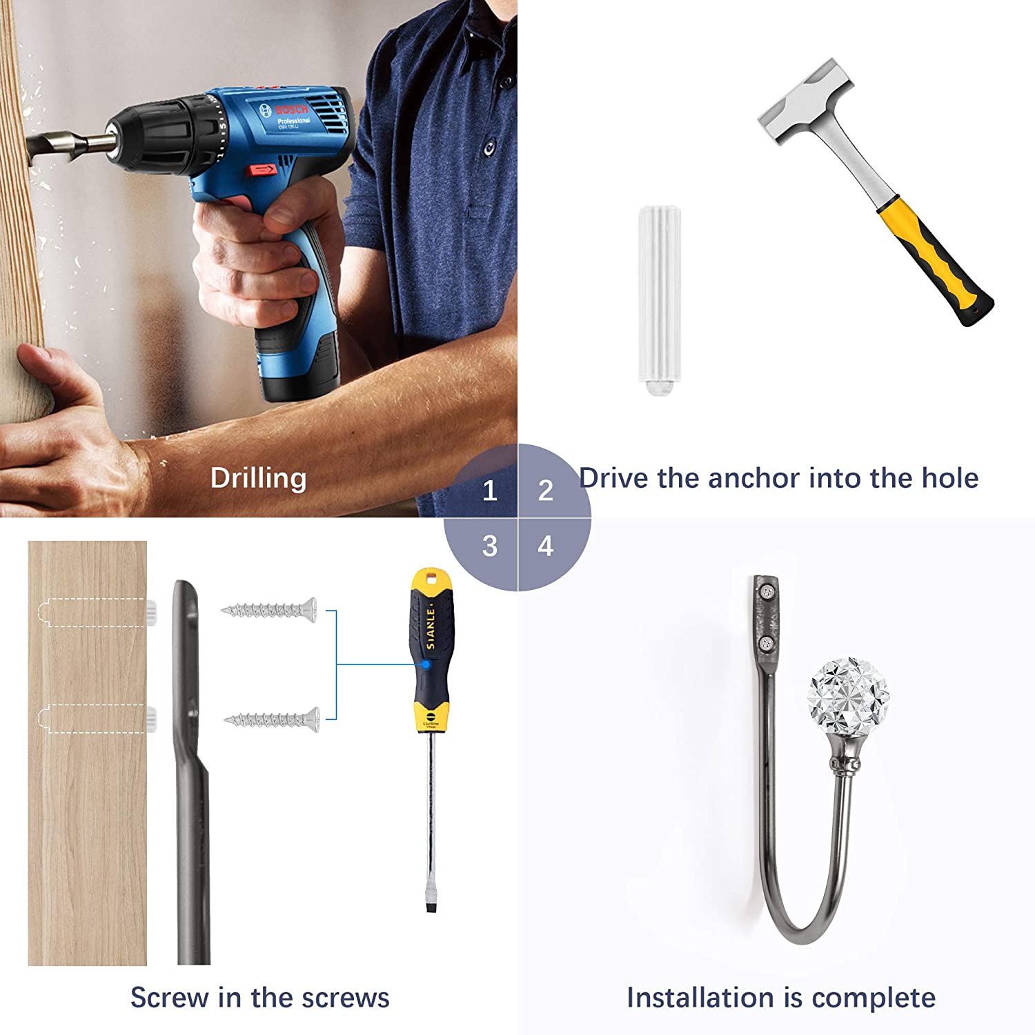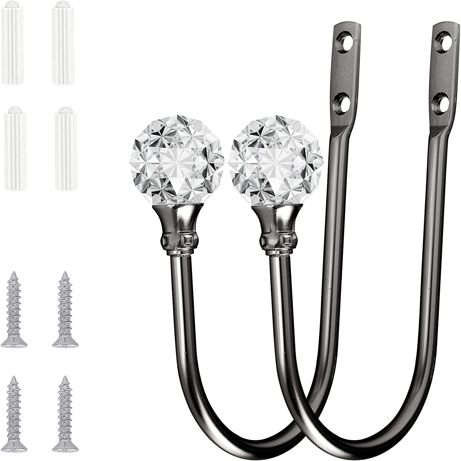 - Durable& SturdyOur metal curtain holdback is made of high-quality materials, with a polished surface which is corrosion resistance, deformation resistance, and good gloss, not easy to oxidation and fade. The crystal ball is stuck with high-quality glue and will not fall off easily.