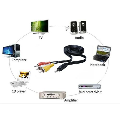 Brand new and high quality. Environmental-friendly PVC Materials of cable, more soft, flexible bend, can use for a long time. Pure copper wire core with ultra-high speed data transmission. Bump less transfer, durability Insertion and withdrawal, more practical. Provide spare or replacement 3.5mm audio cables to carry with you and keep at the desk or in the car. Compatible to video or audio equipment with RCA type jacks: DVD player / recorder, VCR, TV, Camcorder, Hi-Fi Stereo, Receiver. Specifications: Cable Length: 1m Connector A: 3.5mm Jack Male Connector B: 3 RCA Male Package included: 1 * 3.5mm to 3RCA Cable