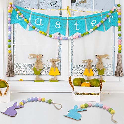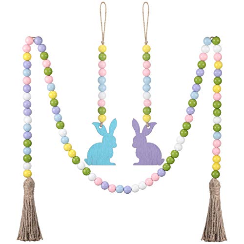 - 2 Chic styles: the package contains 3 pieces Easter wood bead garlands in 2 different styles, including 1 piece of long bead garland measuring approx. 59 inch/ 150 cm and 2 short bead garlands with rabbits of different colors, the diameter of each wooden bead is approx. 0.6 inch/ 16 mm; Sufficient quantity and chic styles to make your home more elegant