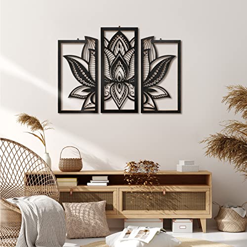 3 Pcs Large Lotus Flower Wall Art Mandala Carved Wood Wall Art Decoration