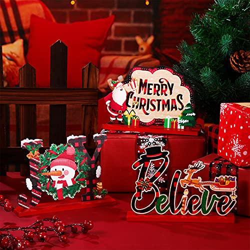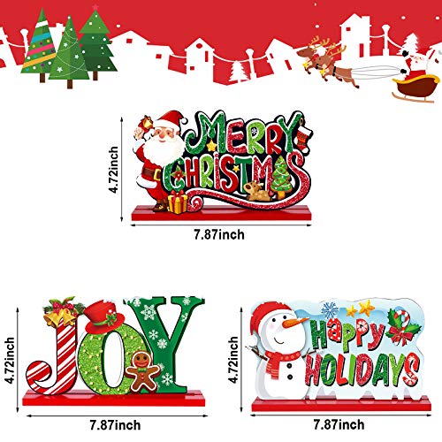 - Adorable Christmas centerpiece sign: you will receive a total of 3 pieces of Merry Christmas centerpiece signs in 3 different but delicate designs, all the table top decorations are filled with elements like Merry Christmas, JOY, snowman, reindeer and so on, vibrant colors of them can well add festive atmosphere to your home