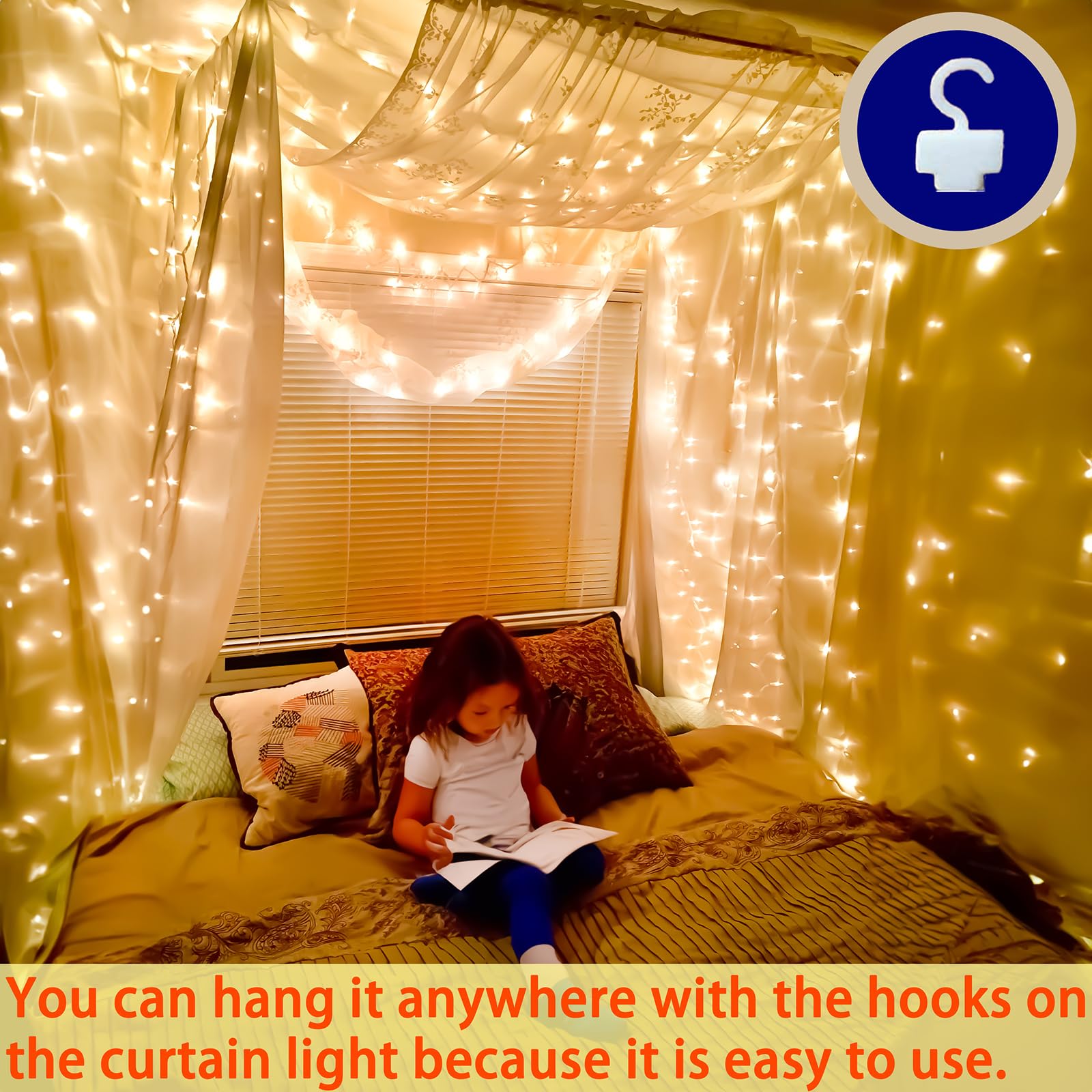 - ✅【Easy to Use】: Simply plug in with a USB charger or power bank and start enjoying the curtain lights anywhere you love. Plus, the 9.8ft lead wire and 10 hooks make it easy to hang them in any special place you desire.
