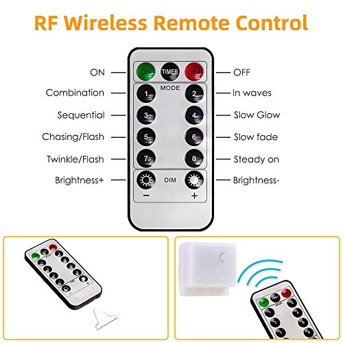 • 💡【8 Modes Dimmable Fairy Lights With Remote】10 brightness adjustment levels and 8 lighting modes to choose: 1.Combination 2.In wave 3.Sequential 4.Slow Glow 5.Chasing/Flash 6.Slow fade 7.Twinkle/Flash 8.Steady on. Set the warm white lights for 6 hours on and 18 hours off with timer, get the current lighting mode when you set the twinkle lights back to work. Nice idea for home, bedroom, fireplace, dorm, living room.