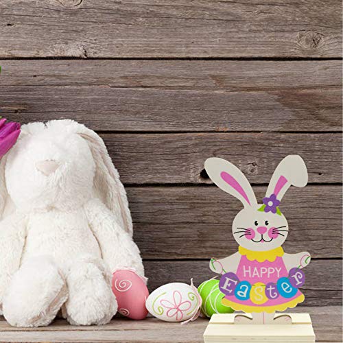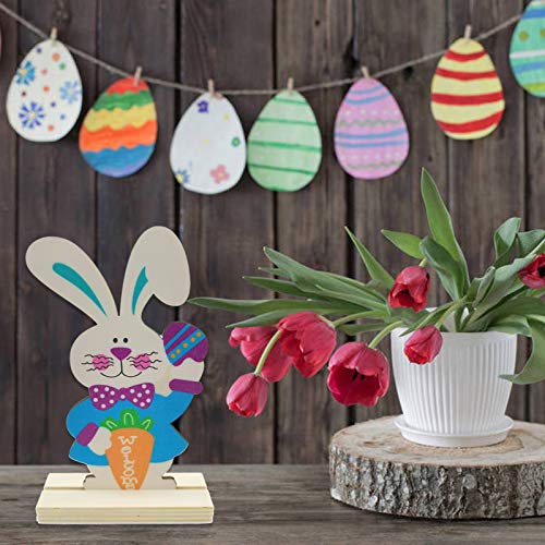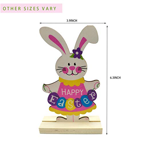 - 🐰What you get:4 PCS Easter Wooden Spring Rabblit Tabletopper Decor.Front painted with vibrant color while back is nature wood color.The rectangular base allows the rabbit to stand steadily without falling down.The perfect addition for your Easter Party.