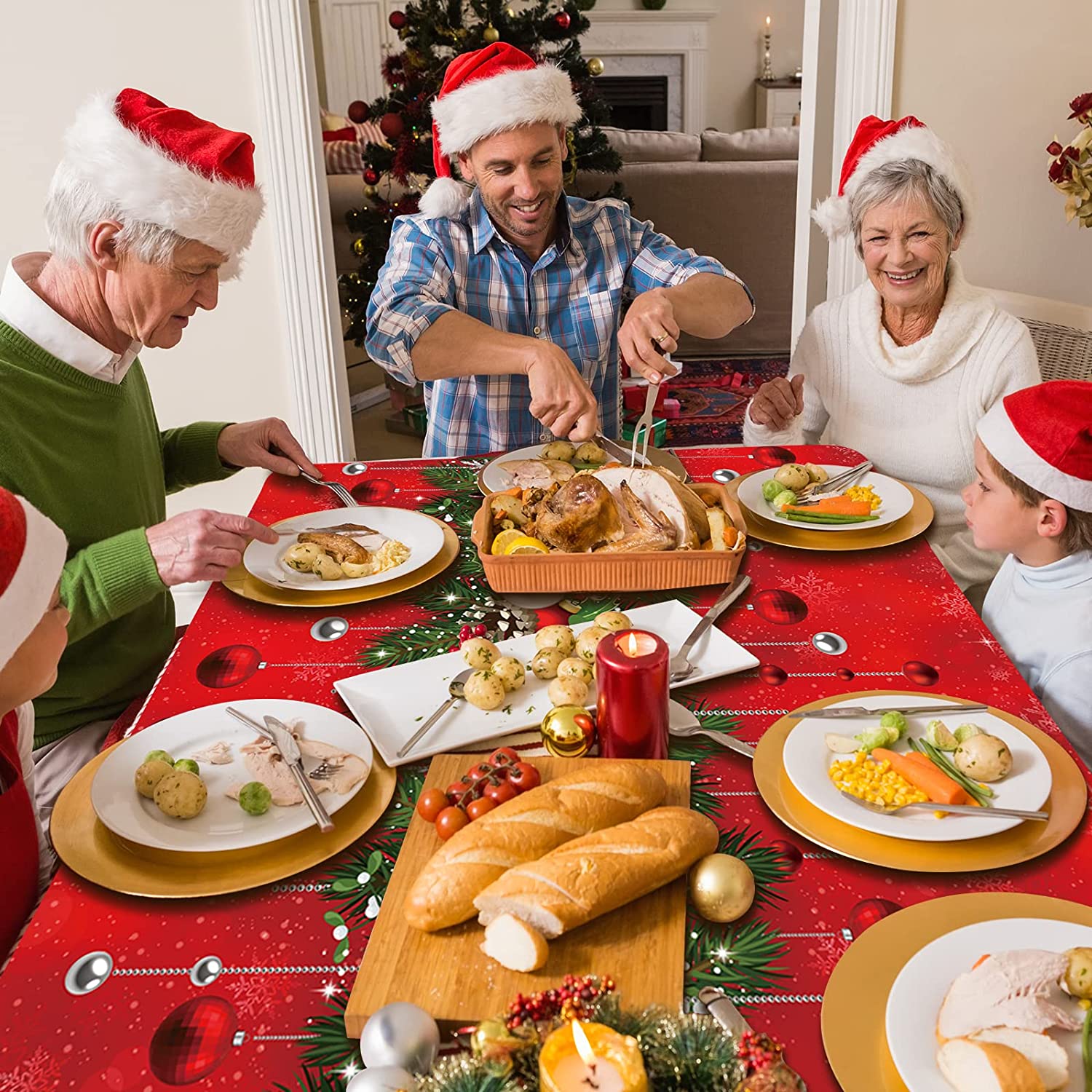 - Large size: the rectangle Xmas tablecloth measures 54 x 108 inches/137 x 274cm,which fits for most rectangle 8-10 seats tables, it is large enough to decorate your Christmas themed party, is an ideal addition to any Christmas table