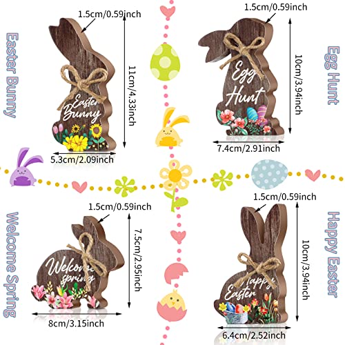 4 Pcs Easter Bunny Wood Decoration