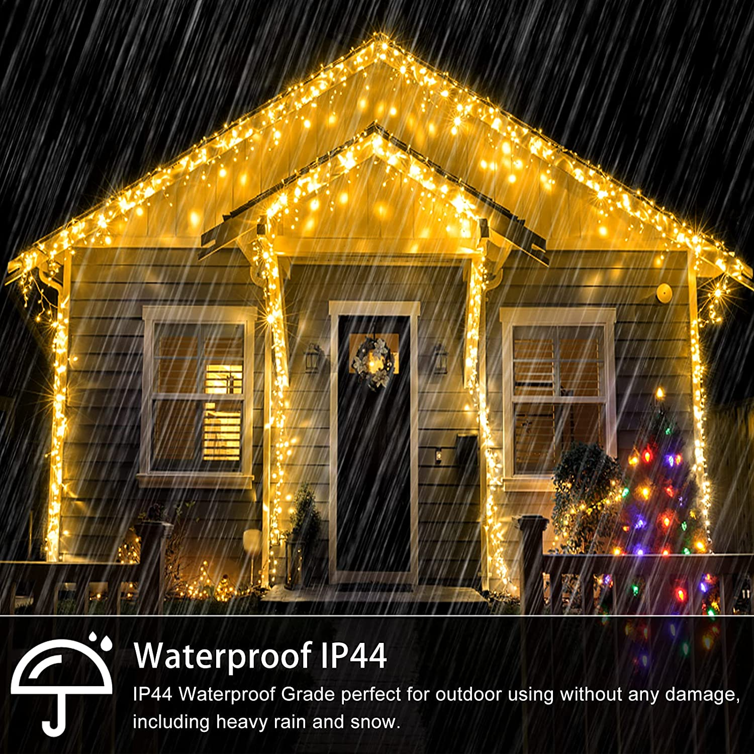 - Waterproof: IP44 Waterproof Grade perfect for outdoor using without any damage, including heavy rain and snow. Tips: Please note that the US-Plug is NOT waterproof, please keep it away from water.
