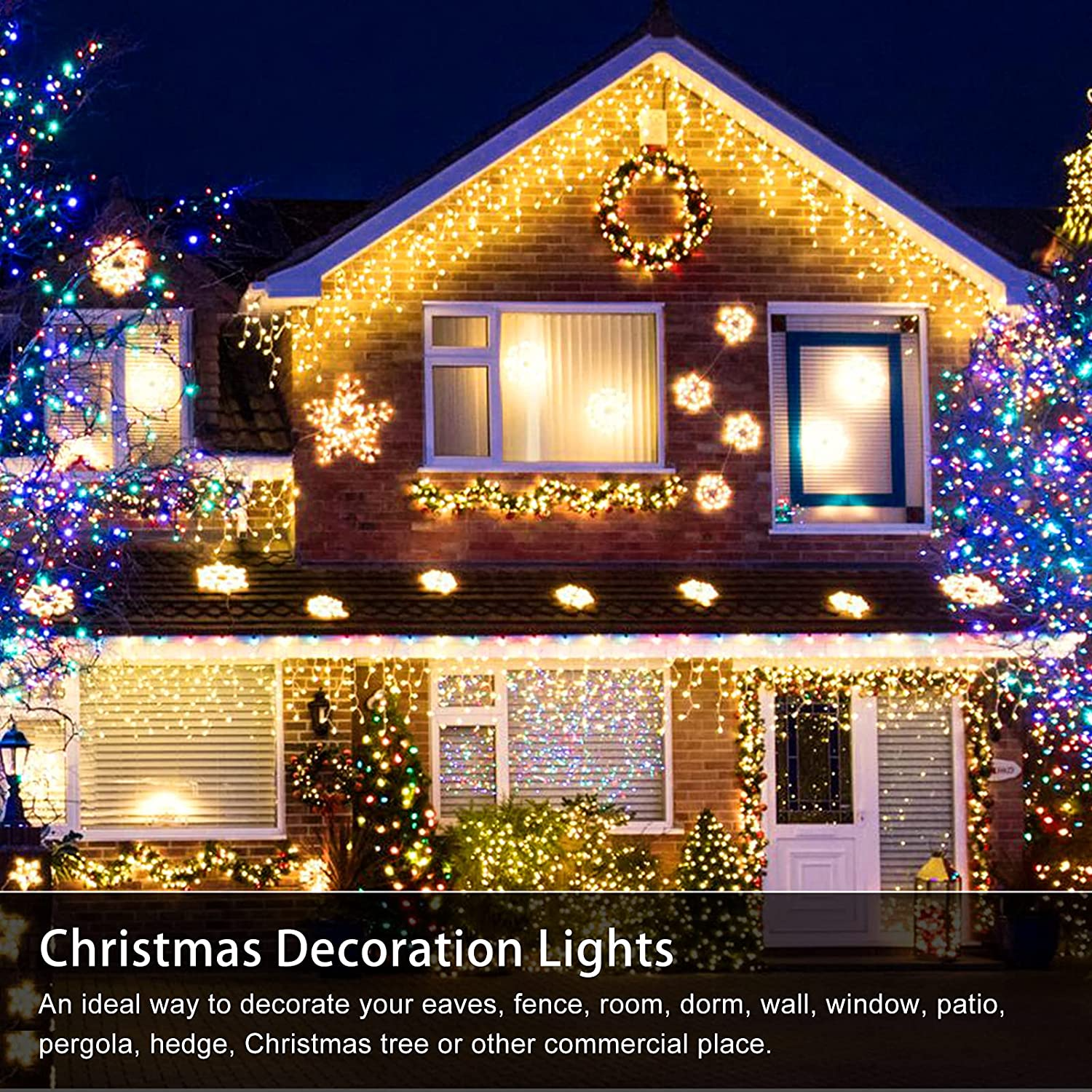 - Widely Use: The Christmas Ice Light is perfect for indoor & outdoor of anywhere you want to decorate. Such as eaves, bedroom, walkways, patios, gardens, fences, porches, clubs, ceilings, driveways, railings, Christmas, wedding, parties etc.