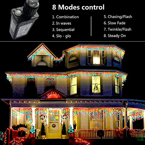 - 8 Lighting Modes & Memory Function: 8 different lighting modes including combination, fireflies flashing, waves, fading, chasing/flashing, fading slowly, twinkle/flashing and steady on. Built-in memory chip saves your last mode setting without having to reset the mode every day.