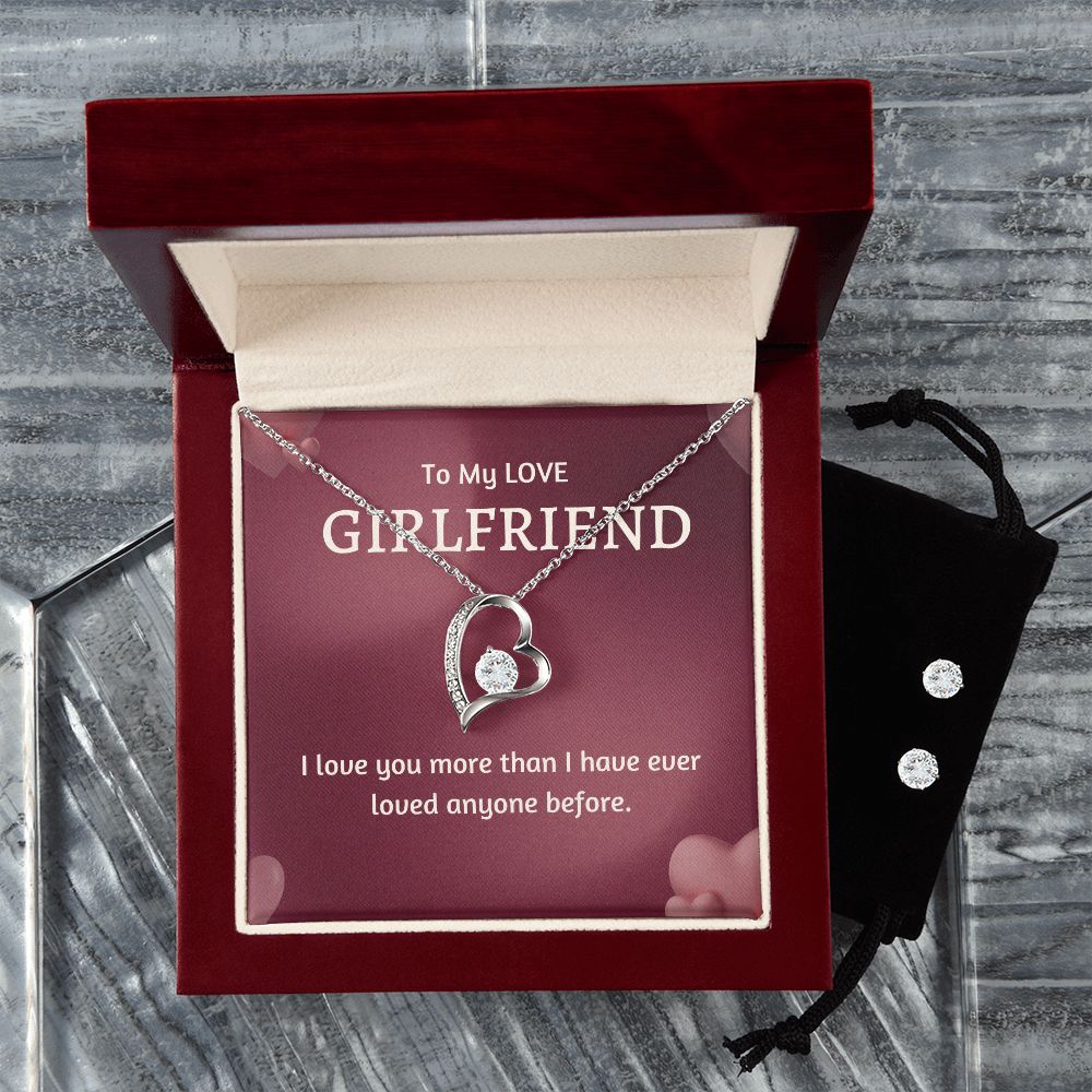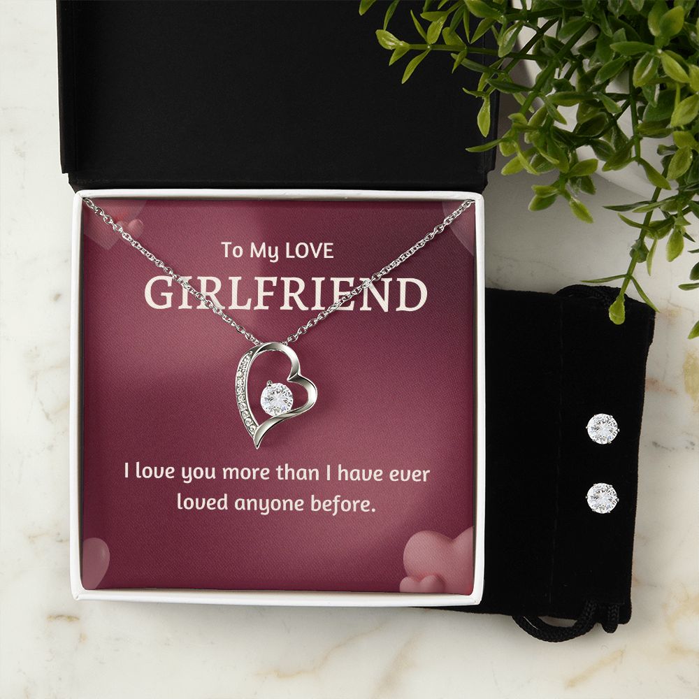 Give your loved one a gift that will make their heart swell! The Forever Love Necklace and Cubic Zirconia Earring Set is sure to do the trick. This necklace and earring pairing provides dazzling sparkle when worn together or separately, and is perfect for any occasion! Do not miss out on this special offering!