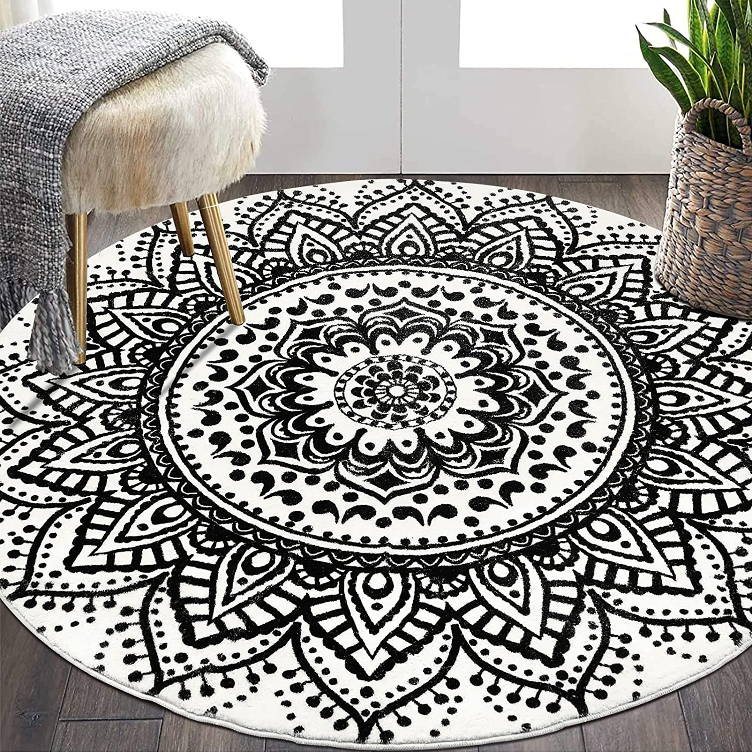 Extra Soft Circle Carpet: This cute circle rug is comfortable for all people.Soft round boho rug adds a touch of elegance to your home decor, offering a different vision and feeling, with bohemia design, very beautiful and durable for high traffic areas, so distinctive and eye-catching to decorate your home.