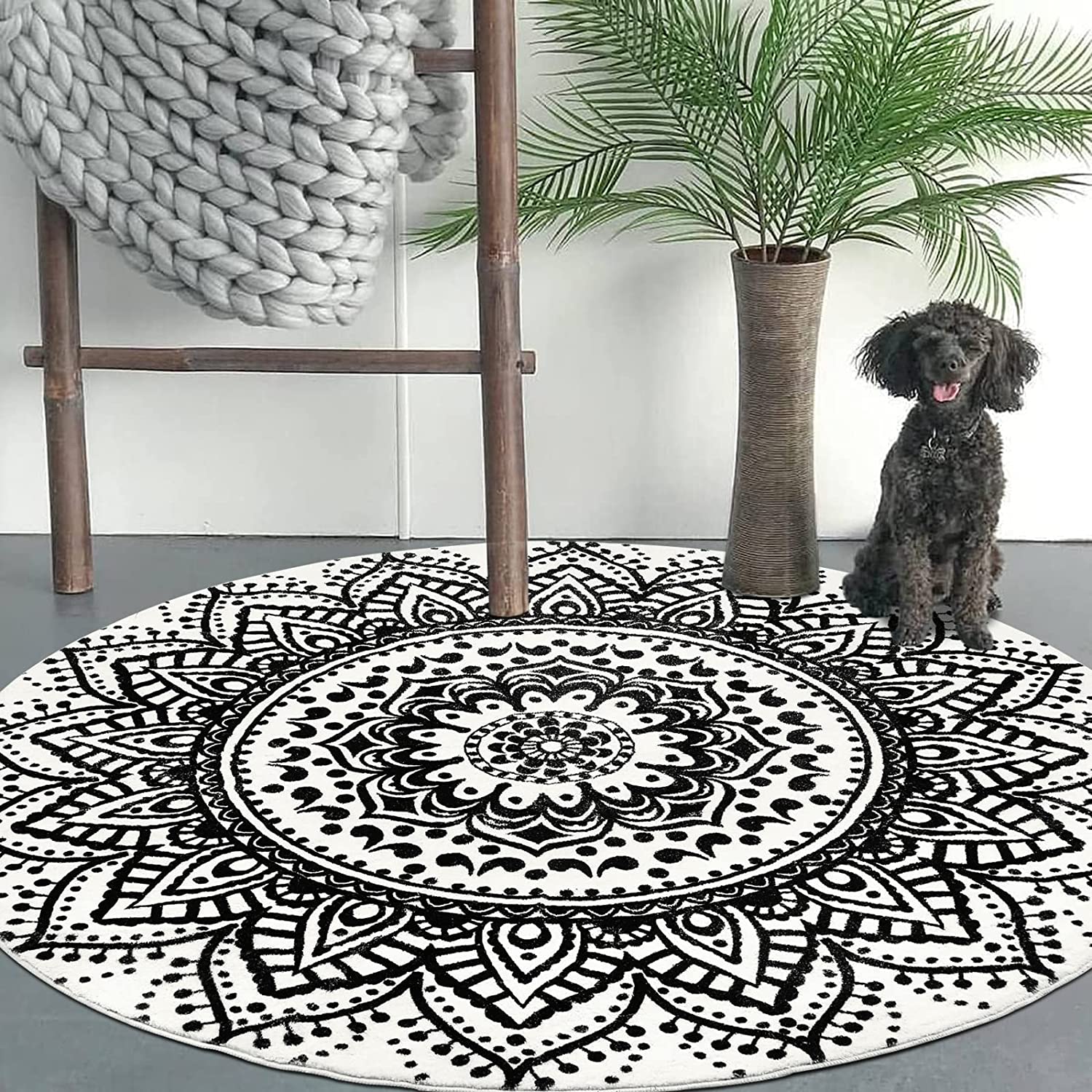 5.25 Ft Large Round Area Rug Chic Mandala Bohemian Printed Rug Non Skid Machine Washable Ultra Soft Area Mat Living Room Circle Carpet for Bedroom Playroom