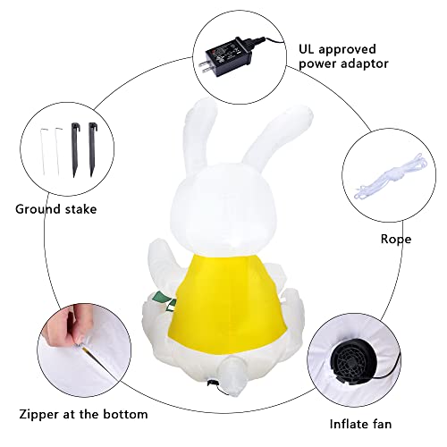 - 【Package content】 The package contains a rabbit inflatable decoration, built-in fan and LED light, pile x 4, drawstring x 2. The Easter bunny inflatable decoration can be easily fixed with ropes and piles.