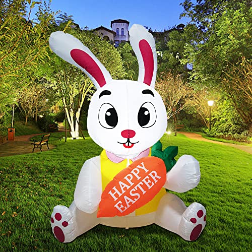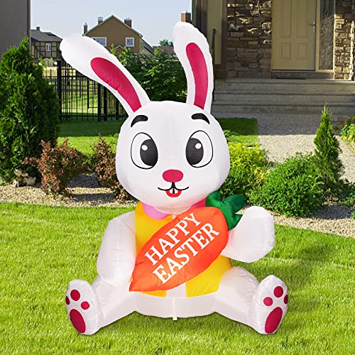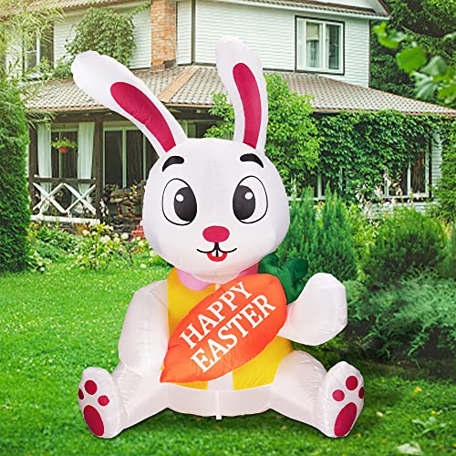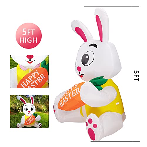 5 FT Cute Bunny Holding Carrots Easter Inflatable Decorations w/ Built-in LED