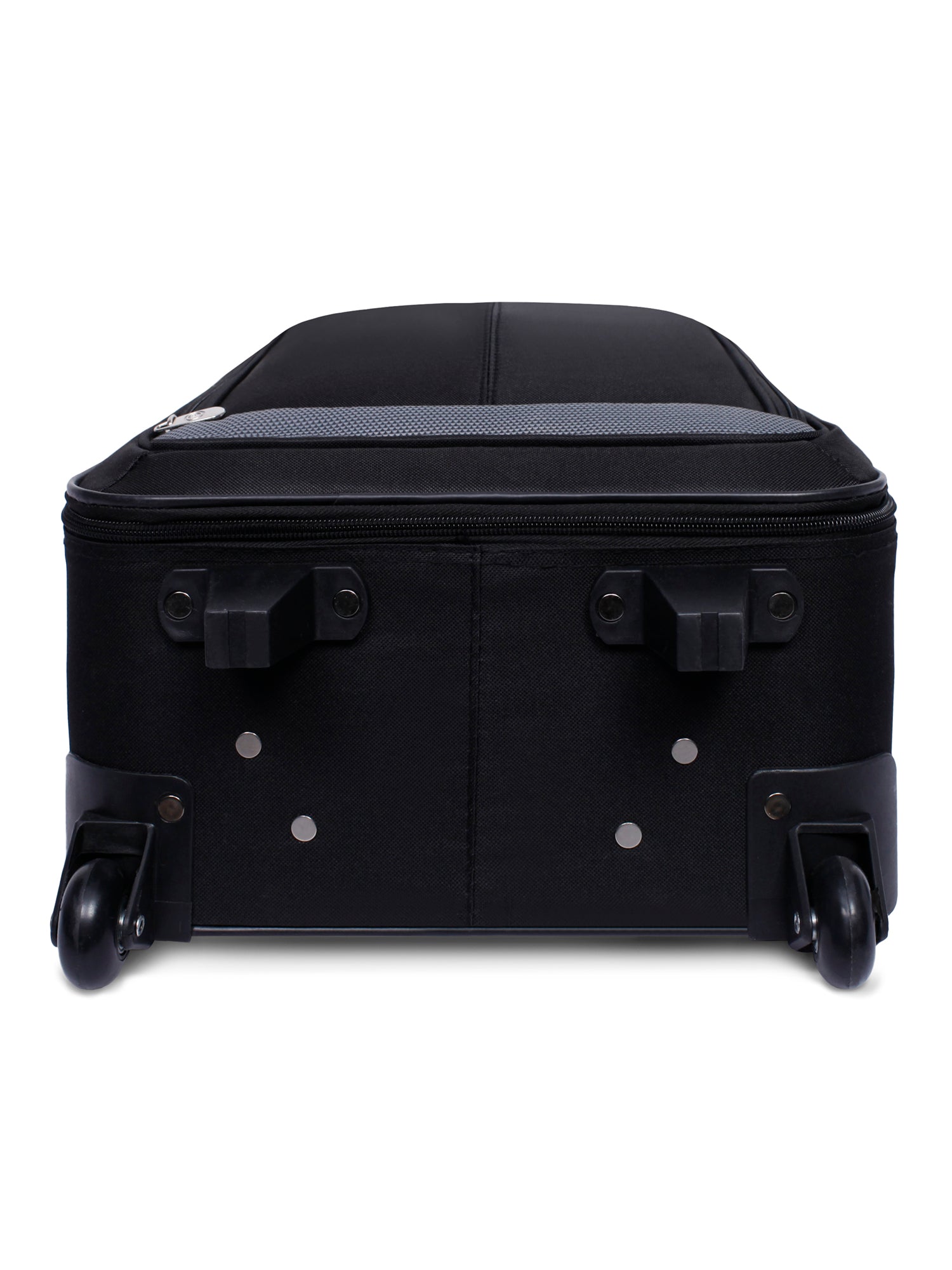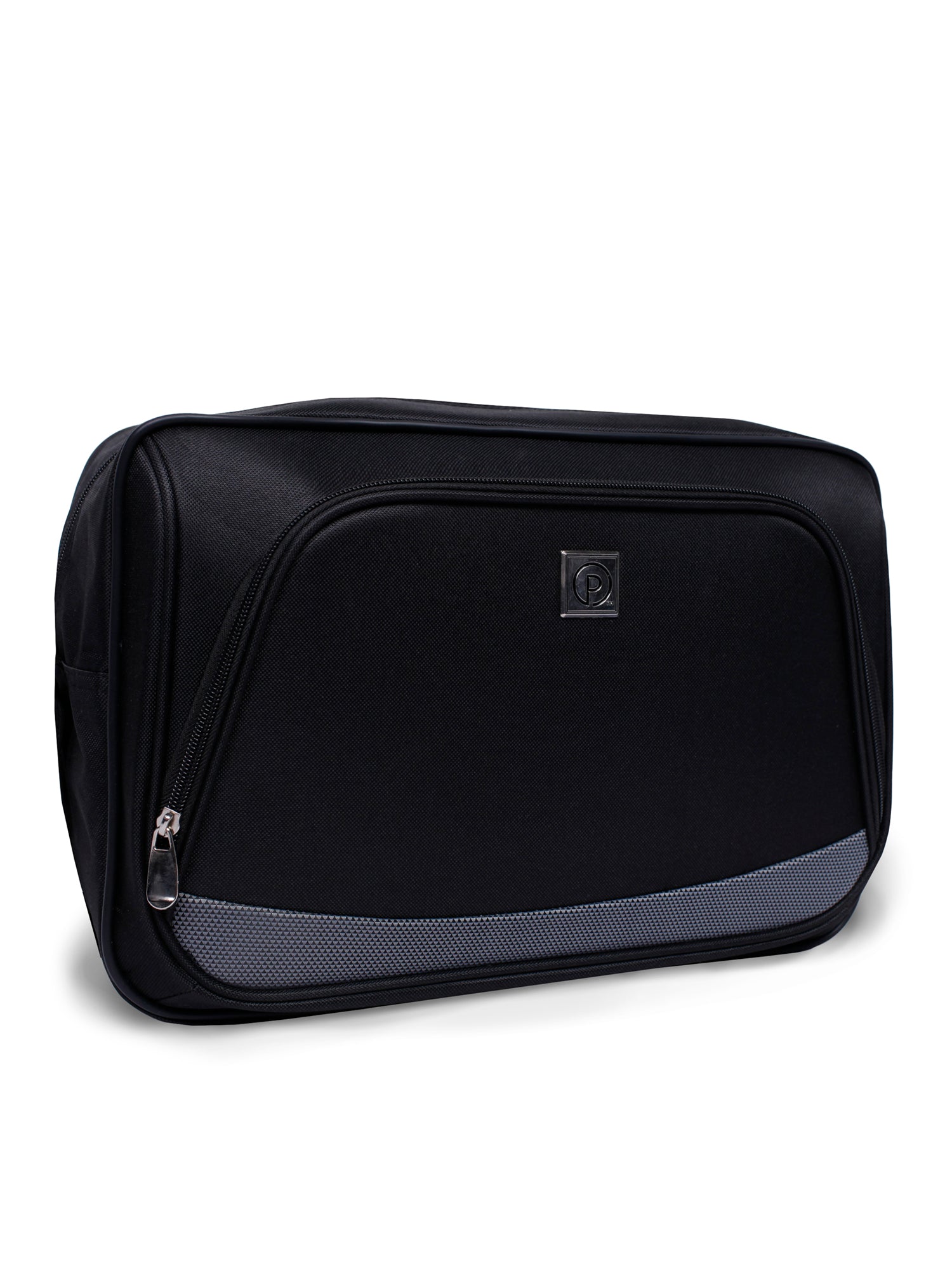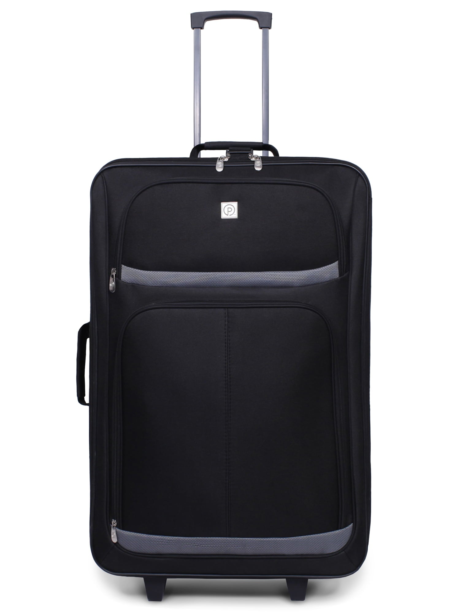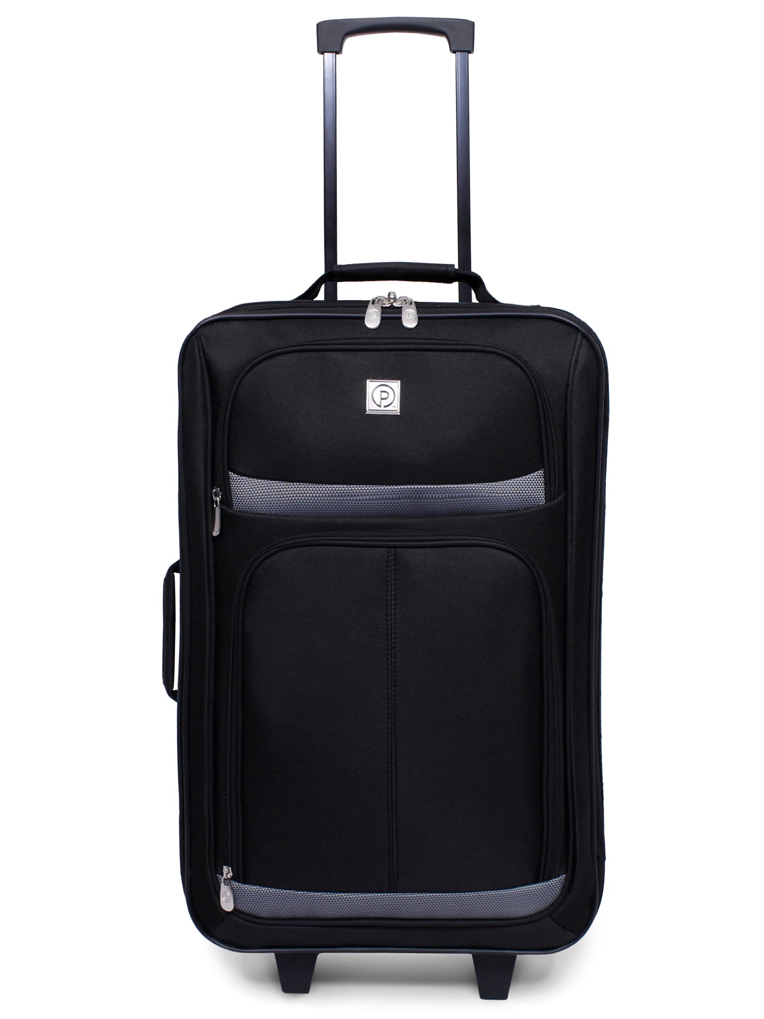 Make packing for your vacation simple with this Protege 5 piece softside luggage set. This set includes the perfect sized piece regardless of your travel needs. Included are a check size 28-inch upright, 21-inch upright, convenient boarding tote, a matching toiletry kit, and a cinch sack for packing all of your personal belongings. The larger bags include 2 in-line skate wheels and sturdy handles for easy transportation. This five-piece value luggage set is available in either black or purple material and offers cutting edge functionality combined with contemporary aesthetics.