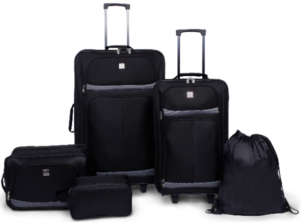 5 Piece 2-Wheel Luggage Set, Check and Carry On Size- Black