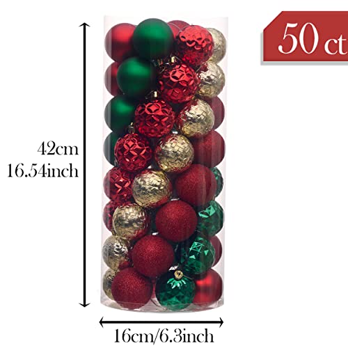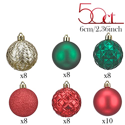 - 【Application】 This set of 50 balls, each measuring 2.36 inches/6cm, is suitable for use as a 6ft Christmas tree, tabletop decoration and DIY for wreaths or garlands, and also makes an excellent gift