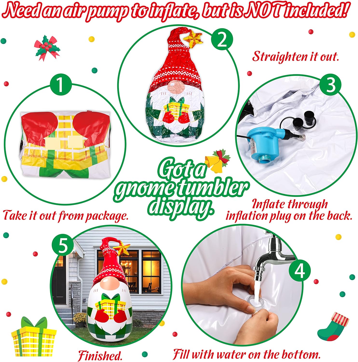 - Cute&fun Christmas&happy new year toy/decoration to have holiday spirits - Have this up outside in your front yard/on your porch or patio to welcome Christmas or new year, kids will squeal with excitement as it inflates and wobbles! Let your little ones get into holiday spirits with this gnome tumbler!