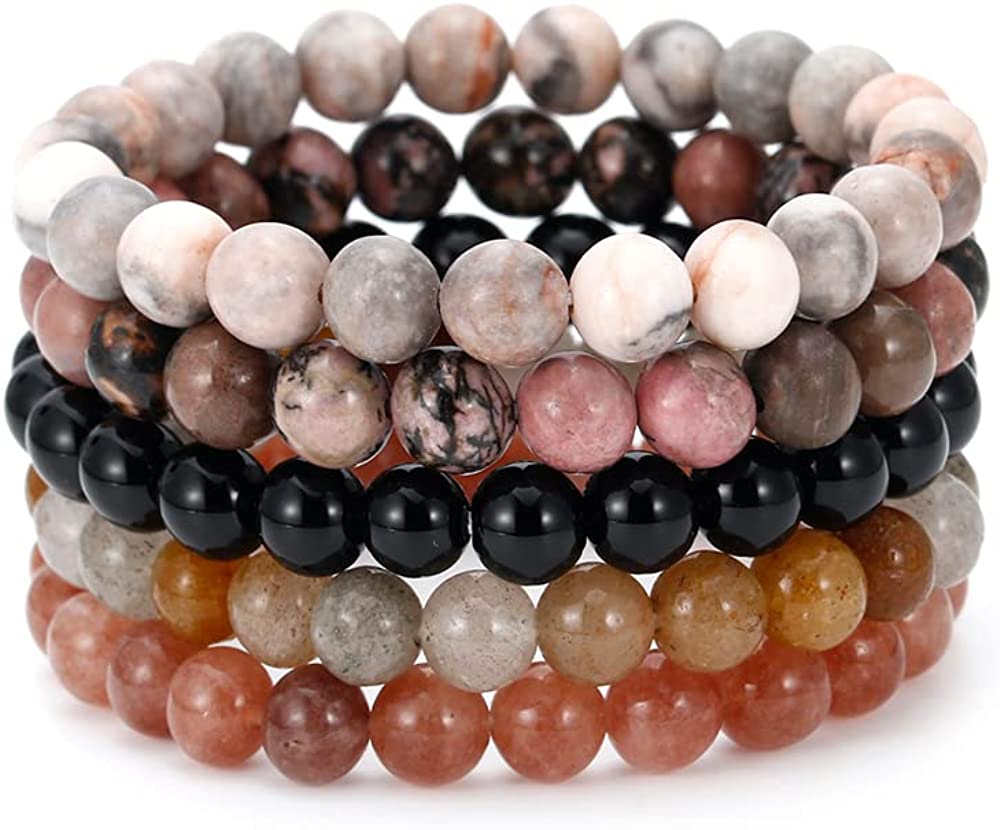 5PCS Semi-Precious Gemstone Bracelet - Healing Crystal Stone Beaded Bracelets for Women Men 8mm