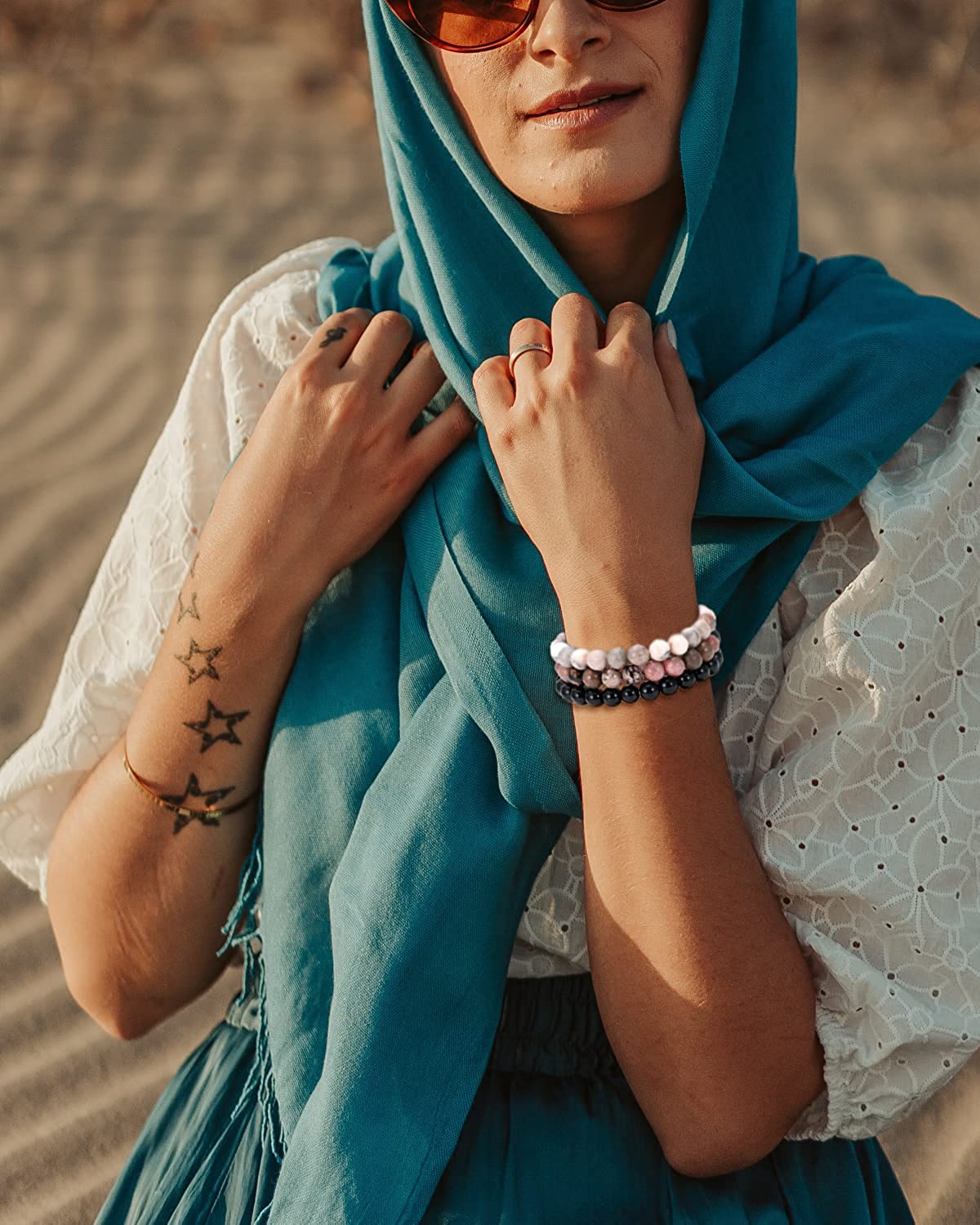 - 【Ideal Gift 】-- The stone bead bracelet set is stylish and benefit for regulation mood, good for both men and women. suitable for stress relief, meditate, yoga, excellent gift choices for party, Anniversary, Christmas, Birthday, Mother's day, Father’s day, Valentine's day,Halloween and so on.