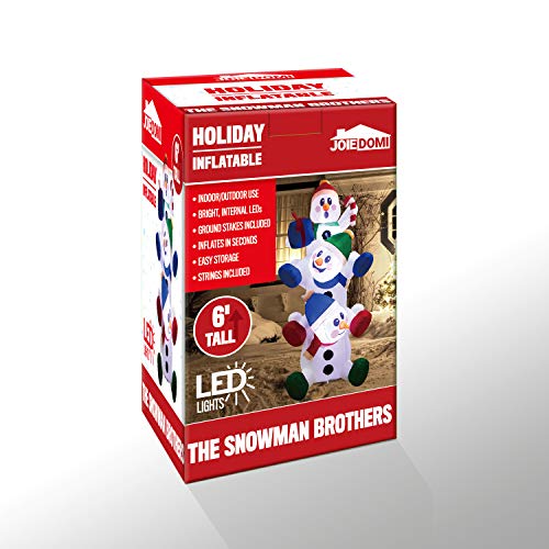 - 6 Feet Tall Snowman Inflatable comes with an extended cord, ground stakes, fastened ropes, built-in sandbags, and a plug with UL certification.